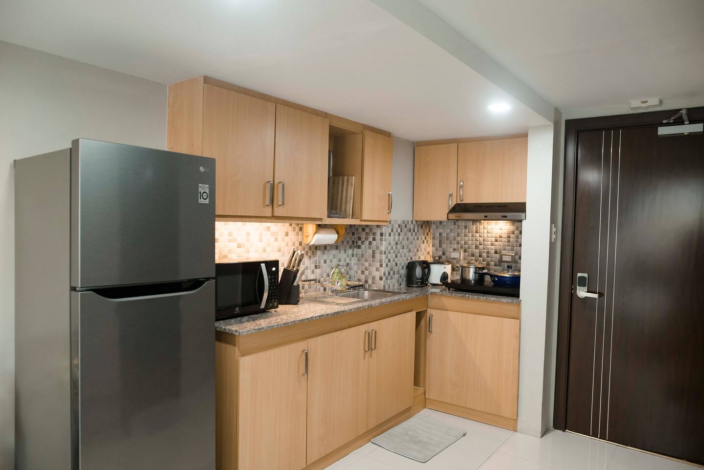 Access made easy at our modern, 2-level condo! Enjoy convenient parking in the on-site garage (at a fee of 2,000 PHP per day) & enter with a unique door code.